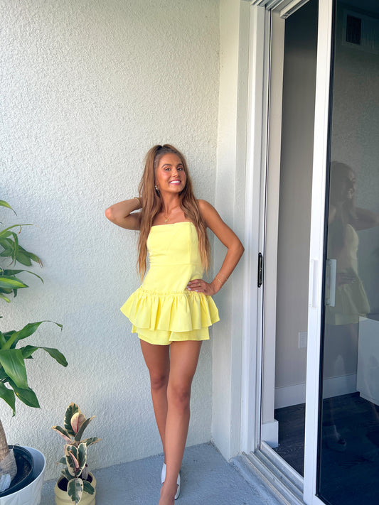 Kathryn Strapless Tiered Ruffled Romper - Yellow