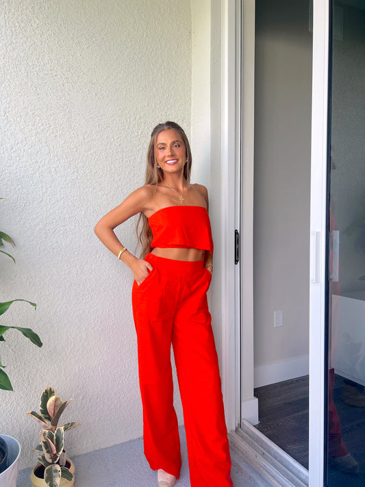 Rachel Asymmetrical Crop Top & Pant Set - Burnt Orange